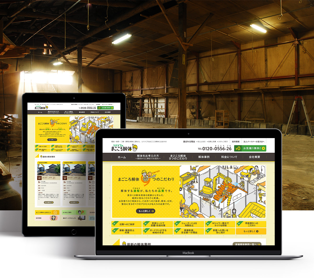 解体事業会社のWebサイト。 ロゴ、広報物、Webサイトのデザインを担当。